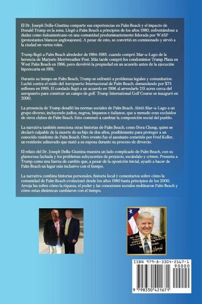 ¿Alguna vez has oído hablar de Palm Beach? Seguramente, viene a la mente cuando piensas en una hermosa zona costera conocida por sus playas de arena, casas lujosas y clima soleado. Es un destino de vacaciones popular con un ambiente relajado y exclusivo. Sin embargo, Palm Beach es mucho más que eso. Este libro está lleno de secretos que se han mantenido ocultos en Palm Beach. Estos secretos son revelados por el Dr. Joseph Della-Giustina, un italoamericano que decidió mudarse a Palm Beach en la década de 1980. Después de haber vivido allí durante más de 40 años, ha sido testigo de muchos de los eventos que han ocurrido en Palm Beach. Desde secretos políticos ocultos hasta asesinatos individuales, engaños, manipulación y más... El Dr. Joseph Della-Giustina, tras mucho esfuerzo dentro de esta comunidad desconocida, construyó su presencia en Palm Beach y fue honrado como comisionado durante la presidencia de Donald Trump. Ha presenciado muchas cosas que permanecen ocultas al mundo. Si bien es posible que hayas oído hablar de algunos de estos incidentes, este libro revelará las historias secretas detrás de esos eventos y la política que el Dr. Joseph Della-Giustina ha visto con sus propios ojos. ¿Quieres conocer los secretos ocultos de Palm Beach? ¿Te interesa? Solo abre este libro para descubrirlo todo, incluidas las experiencias personales y profesionales del Dr. Joseph Della-Giustina en Palm Beach. Como suele decir Joseph: "Lo que hacemos por nosotros mismos muere con nosotros; lo que hacemos por los demás vive para siempre.