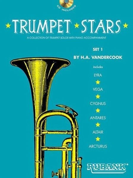 The popular Trumpet Stars by H.A. VanderCook are now combined in two collections that are also included on many state contest lists. Presented in two sets of six titles each (Set 2 - HL04470001), the pieces range in difficulty from grade 1 to grade 2. Each collection also includes a demonstration CD with a full performance recording and accompaniment only recording for each song. (Trumpet: Bob Clark; Piano: Mari Falcone) Contents: Lyra * Vega * Cygnus * Antares * Altair * Arcturus