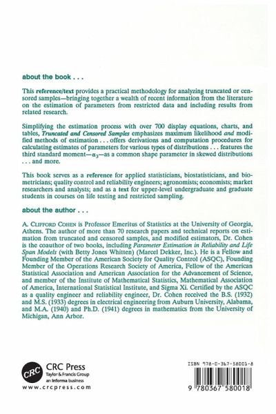 This book deals with the development of methodology for the analysis of truncated and censored sample data. It is primarily intended as a handbook for practitioners who need simple and efficient methods for the analysis of incomplete sample data.