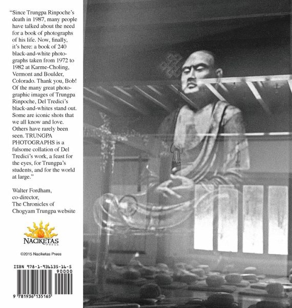 Since Trungpa Rinpoche's death in 1987, many people have talked about the need for a book of photographs of his life. Now, finally, it's here: a book of 240 black-and-white photographs taken from 1972 to 1982 at Karme-Choling, Vermont, and Boulder, Colorado. Thank you, Bob! Of the many great photographic images of Trungpa Rinpoche, Del Tredici's black-and-whites stand out. Some are iconic shots that we all know and love. Others have rarely been seen. TRUNGPA PHOTOGRAPHS is a fulsome collation of Del Tredici's work, a feast for the eyes, for Trungpa's students, and for the world at large. -- The Chronicles of Chogyam Trungpa website.