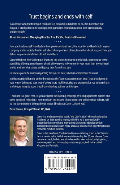 How you trust yourself manifests in how you understand trust, live your life, and lead-both in your company and in society. Trust in self affects how you trust others, how others trust you, and how you deliver on your commitments to self and others. Conor O'Malley's New Ordering of Trust and the stories he shares in this book, open you up to the possibility of being a new learner of self, allowing you to live more in your heart than in your head and to lead more for others and legacy, than for self and ego. He invites you to be curious regarding the topic of trust, which is omnipresent for us all. In this second edition the author introduces: the "seven assessments of trust" that are aligned to your way of being and your way of doing; more real-life stories and examples for you to learn from; and deeper insights about trust from other key authors on this topic.