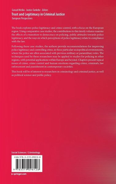 The book explores police legitimacy and crime control, with a focus on the European region. Using comparative case studies, the contributions to this timely volume examine the effects of a transition to democracy on policing, public attitudes towards police legitimacy, and the ways in which perceptions of police legitimacy relate to compliance with the law.