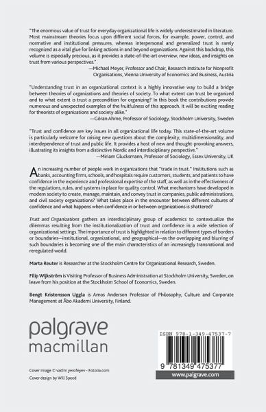 "Understanding trust in an organizational context is a highly innovative way to build a bridge between theories of organizations and theories of society. To what extent can trust be organized and to what extent is trust a precondition for organizing? In this book the contributions provide numerous and unexpected examples of the fruitfulness of this approach. It will be exciting reading for theorists of organizations and society alike." - Göran Ahrne, Professor of Sociology, Stockholm University, Sweden