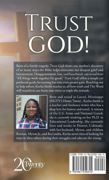 Born of a family tragedy, Trust God shows one mother's discovery of so many ways the Bible helps overcome our deepest grief and bereavement. Disappointment, loss, and heartbreak can reveal how "All things work together for good." Trust God! offers a simple yet profound guide for turning loss into even greater gain. Reaching out to help others, Keeba Smith teaches us all how truth and The Word will transform our hurts into twice or triple the rewards. Born and raised in Laurel, Mississippi (HGTV's Home Town) , Keeba Smith is a teacher and freelance writer who has a deep love for history and travel. A veteran of the U.S. Army and National Guard, she is currently working on her Ph.D. in Educational Leadership. She currently lives and works in Denver, Colorado, with her husband, Myron, and children Keenan, Myron Jr., and Kee'undra. Keeba never tires of looking for ways to bless others during their struggles and educate the young.