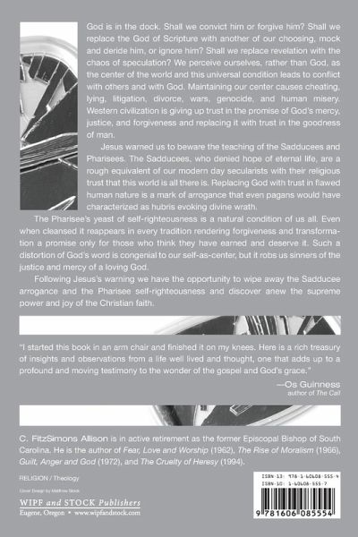 God is in the dock. Shall we convict him or forgive him? Shall we replace the God of Scripture with another of our choosing, mock and deride him, or ignore him? Shall we replace revelation with the chaos of speculation? We perceive ourselves, rather than God, as the center of the world and this universal condition leads to conflict with others and with God. Maintaining our center causes cheating, lying, litigation, divorce, wars, genocide, and human misery. Western civilization is giving up trust in the promise of God's mercy, justice, and forgiveness and replacing it with trust in the goodness of man. Jesus warned us to beware the teaching of the Sadducees and Pharisees. The Sadducees, who denied hope of eternal life, are a rough equivalent of our modern day secularists with their religious trust that this world is all there is. Replacing God with trust in flawed human nature is a mark of arrogance that even pagans would have characterized as hubris evoking divine wrath. The Pharisee's yeast of self-righteousness is a natural condition of us all. Even when cleansed it reappears in every tradition rendering forgiveness and transformation a promise only for those who think they have earned and deserve it. Such a distortion of God's word is congenial to our self-as-center, but it robs us sinners of the justice and mercy of a loving God. Following Jesus's warning we have the opportunity to wipe away the Sadducee arrogance and the Pharisee self-righteousness and discover anew the supreme power and joy of the Christian faith.