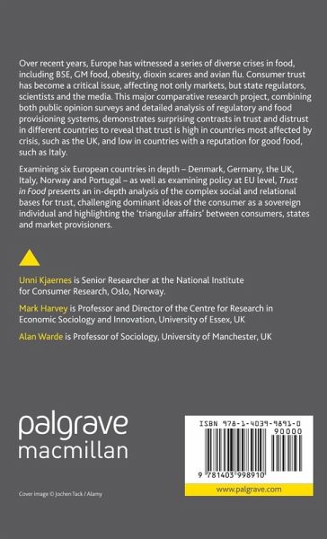 The BSE epidemic, GM foods, avian flu, the growth of supermarkets and the crisis in obesity have shaken consumer trust in food. Uncovering surprising differences between countries, Trust in Food examines this and challenges the idea of the consumer as a sovereign individual, demonstrating how consumption is institutionalized within society.