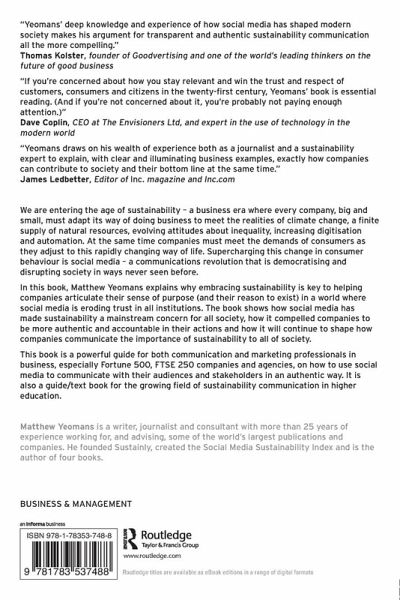 This book explains how social media made sustainability a mainstream concern for all society. It is a powerful guide for both communication and marketing professionals in business, and a textbook for the growing field of sustainability communication in higher education.