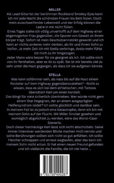 Wenn zwei Welten kollidieren, gehen entweder beide unter oder es entsteht etwas Wundervolles ...MILLERAls Lead-Gitarrist der berühmten Rockband Smokey Eyes kann ich mir jede Nacht die schönsten Frauen ins Bett holen. Doch mein ausschweifender Lebensstil und der Erfolg können die Leere in mir nicht füllen.Eines Tages stehe ich völlig unverhofft auf dem Highway einer abgemagerten Frau gegenüber, die Spuren von Gewalt an ihrem Körper trägt. Sofort ist mein Beschützerinstinkt geweckt und ich kann an nichts anderes mehr denken, als ihr und ihrem Sohn zu helfen. Je mehr Zeit ich mit Stella verbringe, desto mehr fühle ich mich zu ihr hingezogen.Jeder Mann wäre besser für sie geeignet als ich. Ich sollte mich von ihr fernhalten, aber es ist zu spät. Sie ist mir bereits viel zu sehr unter die Haut gegangen, als dass ich sie aufgeben könnte.STELLAWas kann schlimmer sein, als nass bis auf die Haut einem Rockstar auf dem Highway gegenüberzustehen? - Nicht zu wissen, dass es sich bei dem athletischen, mit Tattoos übersätem Kerl um einen handelt.Das klingt für viele sicherlich übertrieben. Wer würde nicht gern einem Star begegnen, der an einem ausgeprägten Helfersyndrom leidet? Ich sollte glücklich und dankbar sein. In meinem Fall ist es jedoch eine Katastrophe, denn ich bin mit meinem Sohn auf der Flucht. Mit Miller Sinclair gesehen und womöglich abgelichtet zu werden, wäre das Worst-Case-Szenario.Doch dieser hartnäckige Kerl lässt sich nicht abschütteln. Seine immer intensiver werdenden Blicke machen mich nervös und seine Berührungen sollten sich nicht so gut anfühlen. Ich sollte Fletcher schnappen und erneut weglaufen, aber das kann ich meinem Sohn nicht antun. Er hat einen neuen Freund gefunden und ich vielleicht die Familie, die ich nie hatte ...Aufgrund der sensiblen Themen gibt es eine Inhaltswarnung.