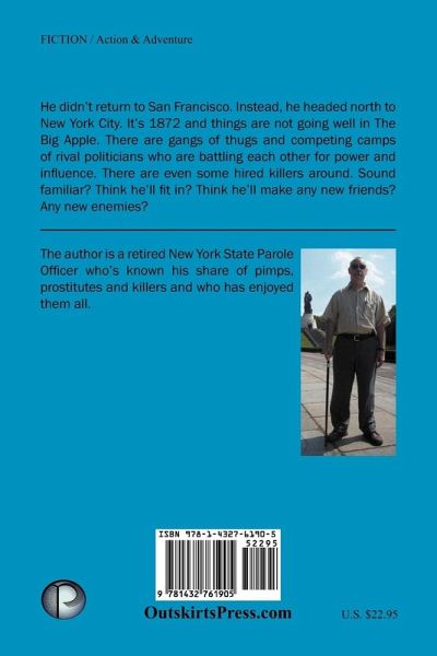 He didn't return to San Francisco. Instead, he headed north to New York City. It's 1872 and things are not going well in The Big Apple. There are gangs of thugs and competing camps of rival politicians who are battling each other for power and influence. There are even some hired killers around. Sound familiar? Think he'll fit in? Think he'll make any new friends? Any new enemies? The author is a retired New York State Parole Officer who's known his share of pimps, prostitutes and killers and who has enjoyed them all.