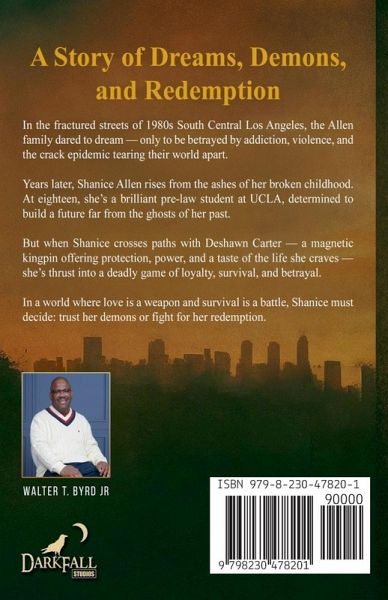 They took her family. Tried to break her spirit. But Shanice Allen wasn't born to survive - she was born to rise. South Central Los Angeles, 1980s - a war zone disguised as a neighborhood. Crack cocaine floods the streets. Families fall apart. And the system that claims to protect children is the same one that shatters them. Shanice Allen is only nine when Child Protective Services tears her from her home. Her mother, Monique, is drowning in addiction. Her father, Andre, a former Marine turned LAPD officer, has lost himself to violence and the pipe. Separated from her younger siblings, Jaclyn and Brice, Shanice is thrown into the foster care system - a cold machine that crushes the weak and forgets the strong. But Shanice refuses to be forgotten. In the face of trauma, betrayal, and endless obstacles, she makes a promise: I will not become them. I will not be broken. I will bring my family back. From the cracked sidewalks of South Central to the gates of UCLA, Trust No Love is a raw, heart-wrenching journey through a world stacked against her - where hope is a weapon, resilience is a rebellion, and love is the one thing more dangerous than hate. Perfect for readers of Tiffany D. Jackson, Angie Thomas, and Sister Souljah, this powerful coming-of-age novel is a tribute to the warriors raised by struggle - and the unbreakable fire of a girl who refused to lose.