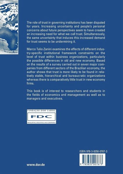 Marco Tulio Zanini examines the effects of different industry-specific institutional framework constraints on the level of trust within business organizations, particularly the possible differences in old and new economy. Based on the results of a survey carried out in seven major companies from different sectors of the Brazilian economy, the author shows that trust is more likely to be found in relatively stable, hierarchical and bureaucratic organizations whereas there is comparatively little trust in new economy firms.
