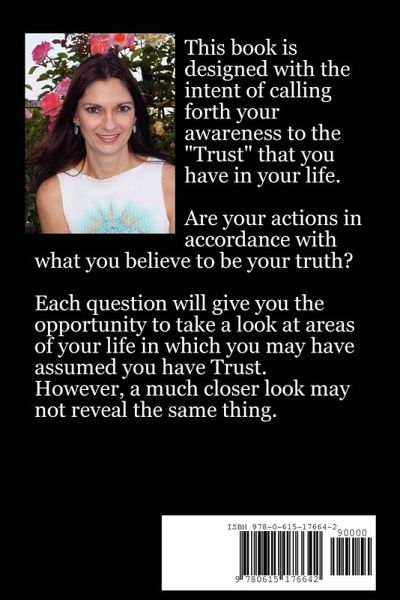 This book is designed with the intent of calling forth your awareness to the "Trust" that you have in your life. Are your actions in accordance with what you believe to be your Truth? Each question will give you the opportunities to take a look at areas of your life in which you may have assumed you have "Trust"; however, a much closer look may not reveal the same thing.