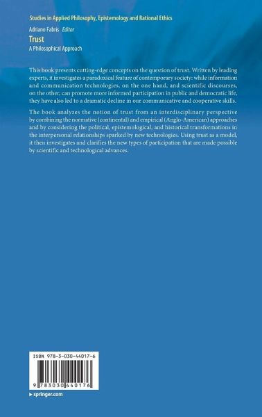The book analyzes the notion of trust from an interdisciplinary perspective by combining the normative (continental) and empirical (Anglo-American) approaches and by considering the political, epistemological, and historical transformations in the interpersonal relationships sparked by new technologies. Using trust as a model, it then investigates and clarifies the new types of participation that are made possible by scientific and technological advances.