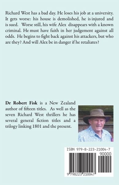 Richard West has a bad day. He loses his job at a university. It gets worse: his house is demolished, he is injured and is sued. Worse still, his wife Alex disappears with a known criminal. He must have faith in her judgement against all odds. He begins to fight back against his attackers, but who are they? And will Alex be in danger if he retaliates?