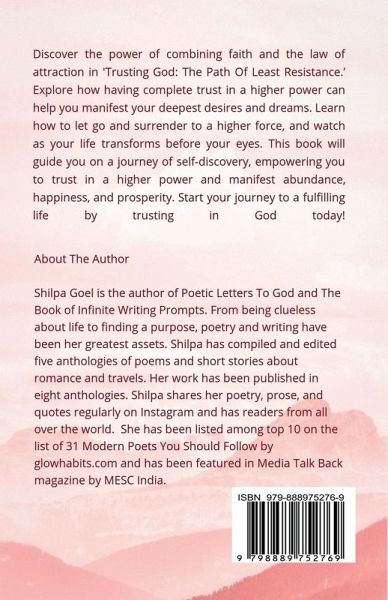 Discover the power of combining faith and the law of attraction in 'Trusting God: The Path Of Least Resistance.' Explore how having complete trust in a higher power can help you manifest your deepest desires and dreams. Learn how to let go and surrender to a higher force, and watch as your life transforms before your eyes. This book will guide you on a journey of self-discovery, empowering you to trust in a higher power and manifest abundance, happiness, and prosperity. Start your journey to a fulfilling life by trusting in God today!