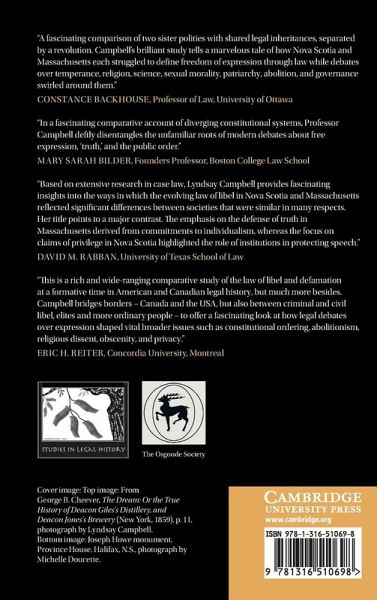 This fascinating study analyzes the evolution of libel law in Nova Scotia and Massachusetts, in the crucible of conflicts over democratic institution-building, gender roles, slavery and other religious and social reform movements. It demonstrates how individuals shaped the law, as they navigated societal change and fought with their neighbors.