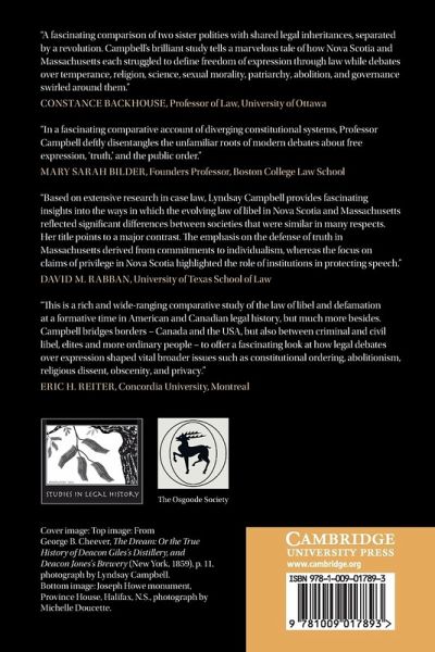 This fascinating study analyzes the evolution of libel law in Nova Scotia and Massachusetts, in the crucible of conflicts over democratic institution-building, gender roles, slavery and other religious and social reform movements. It demonstrates how individuals shaped the law, as they navigated societal change and fought with their neighbors.