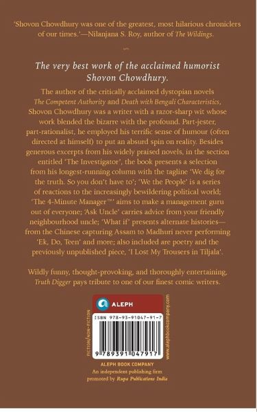 The very best work of the acclaimed humorist Shovon Chowdhury. The author of the critically acclaimed dystopian novels The Competent Authority and Death with Bengali Characteristics, Shovon Chowdhury was a writer with a razor-sharp wit whose work blended the bizarre with the profound. Part-jester, part-rationalist, he employed his terrific sense of humour (often directed at himself) to put an absurd spin on reality. Besides generous excerpts from his widely praised novels, in the section entitled 'The Investigator' the book presents a selection from his longest-running column with the tagline 'We dig for the truth. So you don't have to'; 'We the People' is a series of reactions to the increasingly bewildering political world; 'The 4-Minute Manager¿' aims to make a management guru out of everyone; 'Ask Uncle' carries advice from your friendly neighbourhood uncle; 'What If' presents alternate histories from the Chinese capturing Assam to Madhuri never performing 'Ek, Do, Teen' and more; also included are poetry and the previously unpublished piece, 'I Lost My Trousers in Tiljala'. Wildly funny, thought-provoking, and thoroughly entertaining, Truth Digger pays tribute to one of our finest comic writers.