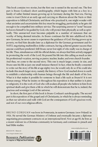 This book contains two stories, but the first one is nested in the second one. The first part is Bruno Corduan's short autobiography, which begins with him as a boy in a family of rather limited means growing up in Germany during the Nazi era. Having come to trust Christ at an early age and carrying no illusions about the Nazis or their opposition to biblical Christianity and those who practiced it, one might wonder with what anxieties and uncertainties this boy must be struggling, particularly as he gets old enough to be compelled into military service. The surprising answer is ""none"" because he knows himself to be guided by God, who will protect him physically as well as spiritually. This unreserved trust becomes palpable in a number of instances that are worthy of being deemed miracles. As Bruno continues his life into adulthood in the new Germany, he never ceases to experience the guidance of God. Having grown up in poverty, we find him decades later as a diplomat for the German government and for NATO, negotiating multimillion dollar contracts, having achieved greater success than anyone could have predicted. Still Bruno never lost sight of who really was in charge of his life. Thus, simultaneous with his official duties, we always find him actively engaged in promoting the work of the Lord. He poured his life into this calling as much as into his professional vocation, serving as pastor, teacher, leader, and even church founder. And thus, we come to the second story. This one is much larger, cosmic in size, and Bruno sees his life as just one small instance thereof. In fact, when he finally consented to write out the story of his life at age eighty-two, he would only do so if he could also include this much larger story, namely the history of how God reached down to earth to establish a relationship with human beings through the life and death of his Son. What is it that makes it possible for someone to lead a life such as Bruno's? It is not human energy. What he insists on throughout his exposition is that neither is it piety or religiosity. It is the work of God who will awaken all people who believe in him from spiritual death and give them a life in which he will demonstrate that he is, indeed, the gracious and sovereign Lord of the universe. In short, the first part of this book is Bruno Corduan's autobiography. The second part is his exposition of the gospel and of Christianity, in which he is always reminding us that our salvation and walk with God are the consequences of God's gracious work, and not of our own religious efforts.