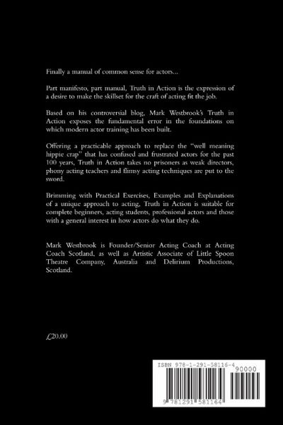 A manual of common sense for actors and those that want to be. "Thank you so much Mark for this fabulous book, I feel elated again and have ditched all the other stuff." JOHNATHON FARREL When you own Truth in Action, you'll: Learn to Develop the Mindset of the Truthful Actor, which means that no matter what skill level you're at, you'll see immediate improvements. Discover how to pull apart any script and grasp the actable parts of it, which means that no matter how good or bad the material is, you'll understand it and you'll have the know-how to translate it into action - the language of the actor. Understand how to connect with your scene partners, which means you'll create great on screen/stage chemistry with your fellow actors. Learn how to transform the ideas and instructions of the director into truthful action. Discover the secrets of truthful acting and how to put them into action, which means you'll create authentic, organic and sincere performances.