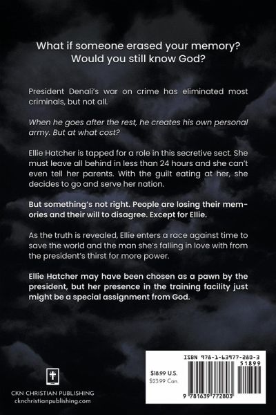 If someone erased your memory, would you still know God? President Denali's war on crime has yielded unprecedented results, but its consequences are far from anticipated. As he wages war against every remaining criminal, he forms his own personal army-at a cost. When Ellie Hatcher finds herself chosen for a pivotal role in this clandestine sect shrouded in mystery, it forces her to leave behind everyone she knows and loves in less than 24 hours. Haunted by guilt and plagued by doubts, she must navigate a treacherous path where loyalty and self-discovery intertwine. But something sinister is at play. As people around Ellie begin losing their memories and surrendering their ability to dissent, she embarks on a race against time to uncover the truth and save the world...and a man she finds herself unexpectedly falling for. Diving deeper into the dark undercurrents of President Denali's regime, Ellie discovers a shocking revelation-the president's thirst for power knows no bounds. And in a world where memory is both a weapon and a weakness, she must question her role in the president's grand scheme. Ellie may have been chosen as a pawn by the president, but her presence in the training facility just might be a special assignment from God. Truth in the Name is an enthralling blend of mystery, romance, and thrilling exploration. Through Ellie's journey, readers are compelled to question the nature of memory, the consequences of power, and the enduring strength of faith. Fans of dystopian fiction and Christian thrillers are sure to be captivated by this thought-provoking tale that challenges the limits of human perception and the very essence of what it means to know God.