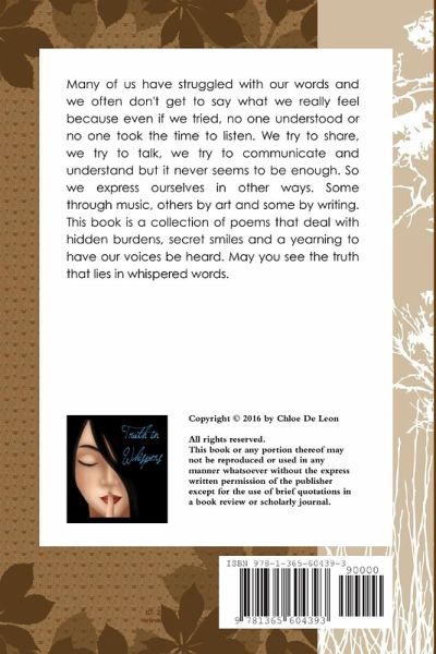 A collection of poems that tackle our struggles with words and everything we yearn to say but couldn't. A four chapter journey through burdens, secrets and painful yearnings that end with a renewed sense of hope for the self.
