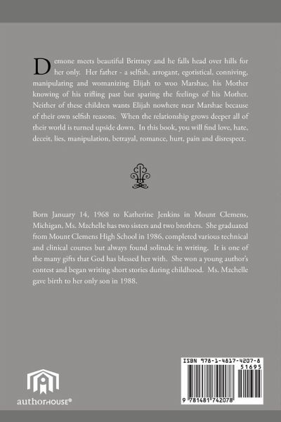 Demone meets beautiful Brittney and he falls head over hills for her only. Her father - a selfish, arrogant, egotistical, conniving, manipulating and womanizing Elijah to woo Marshae, his Mother knowing of his trifling past but sparing the feelings of his Mother. Neither of these children wants Elijah nowhere near Marshae because of their own selfish reasons. When the relationship grows deeper all of their world is turned upside down. In this book, you will find love, hate, deceit, lies, manipulation, betrayal, romance, hurt, pain and disrespect.