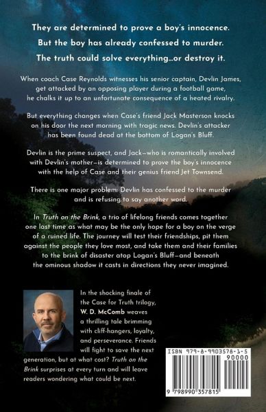 When coach Case Reynolds witnesses his senior captain, Devlin James, get attacked by an opposing player during a football game, he chalks it up to an unfortunate consequence of a heated rivalry. ¿ But everything changes when Case's friend Jack Masterson knocks on his door the next morning with tragic news. Devlin's attacker has been found dead at the bottom of Logan's Bluff. ¿ Devlin is the prime suspect, and Jack-who is romantically involved with Devlin's mother-is determined to prove the boy's innocence with the help of Case and their genius friend¿Jet Townsend. ¿ There is one major problem: Devlin has confessed to the murder and is refusing to say another word. ¿ In Truth on the Brink, a trio of lifelong friends comes together one last time as what may be the only hope for a boy on the verge of a ruined life. The journey will test their friendships, pit them against the people they love most, and take them and their families to the brink of disaster atop Logan's Bluff- and beneath the ominous shadow it casts in directions they never imagined.¿