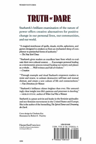 Starhawk is the author of nine books, including her bestselling The Spiral Dance, The Pagan Book of Living and Dying, and Webs of Power, winner of the 2003 Nautilus Award for social change. She has an international reputation, and her works have been translated into many different languages. Starhawk is also a columnist for beliefnet.com and ZNet. A veteran of progressive movements who is deeply committed to bringing the techniques and creative power of spirituality to political activism, she travels internationally, teaching magic, the tools of ritual, and the skills of activism. Starhawk lives part-time in San Francisco, in a collective house with her partner and friends, and part-time in a little hut in the woods in western Sonoma County, where she practices permaculture in her extensive gardens and writes.