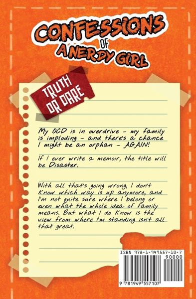 My OCD is in overdrive. My family is imploding. And there's a chance I might be an orphan - AGAIN! If I ever write a memoir, the title will be Disaster. Seriously, just how many girls can say they've had not just one mom but TWO ditch them in twelve short years? Or that they've suffered through the humiliation of bra shopping-WITH THEIR DAD! Or that their entire middle school thinks they're a complete and total nerd just because the girl happens to know a couple of important fart facts. (Did you know the average person produces 500 to 1,500 milliliters of gas per day and farts between 10 and 20 times?) With all that's going wrong, I don't know which way is up anymore, and I'm not quite sure where I belong or even what the whole idea of family means. But what I do know is the view from where I'm standing isn't all that great. I share all of these feelings and more in the pages of my diary, dedicated to "M"-my birth mother.