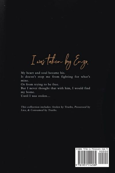 I was taken by Enzo. My heart and soul became his. It doesn't stop me from fighting for what's mine. Or from trying to be free. But I never thought that with him, I would find my home. Until I was stolen… This collection includes: Stolen by Truths, Possessed by Lies, and Consumed by Truths