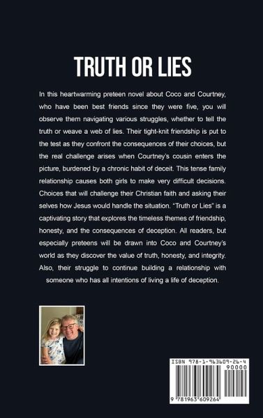 In this heartwarming pre-teen novel about Coco and Courtney, who have been best friends since they were five, you will observe them navigating various struggles, whether to tell the truth or weave a web of lies. Their tight-knit friendship is put to the test as they confront the consequences of their choices, but the real challenged arises when Courtney's cousin enters the picture, burdened by a chronic habit of deceit. This tense family relationship cases both girls to make very difficult decisions. Choices that will challenge their Christian faith and asking their selves how Jesus would handle the situation. "Truth or Lies" is a captivating story that explores the timeless themes of friendship, honesty, and the consequences of deception. All readers, but especially pre-teens will be drawn into Coco and Courtney's world as they discover the value of truth, honesty, and integrity. Also, their struggle to continue building a relationship with someone who has all intentions of living a life of deception.