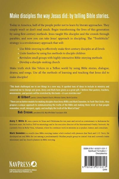 Today in America, half of the people won¿t or don¿t read that much. Begin creatively transforming the lives of this generation by using first-century methods of teaching¿storytelling, drama, and dialog. The ¿TruthSticks¿ strategy is a revolutionary approach using the DNA of the first century disciplemaking that will ¿Use Bible Storying to effectively make disciples at all levels ¿Unite families by using fun methods to disciple children ¿Revitalize small groups ¿ Develop a disciplemaking church A creative tool to use in leadership, evangelism, or missionary work.