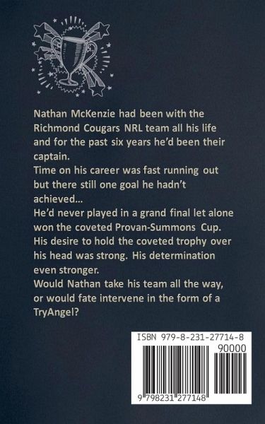 Nathan McKenzie had been with the Richmond Cougars NRL team all his life and for the past six years he'd been their captain. Time on his career was fast running out but there still one goal he hadn't achieved... He'd never played in a grand final let alone won the coveted Proven-Summons Trophy. His desire to hold the coveted trophy over his head was strong. His determination was even stronger. Would Nathan take his team all the way, or would fate intervene in the form of a TryAngel?