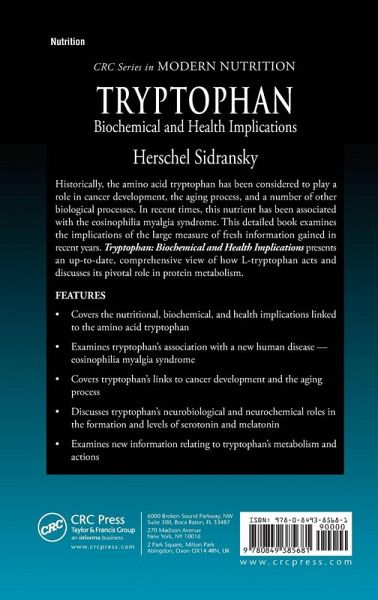 Historically, the amino acid tryptophan has been considered to play a role in cancer development and the aging process. In recent times, this nutrient has been associated with eosinophila myalgia syndrome - a new human disease that attacks the muscular system. This detailed book examines the implications of the large measure of fresh information gained in recent years. Tryptophan: Biochemical and Health Implications presents an up-to-date, comprehensive view of how L-tryptophan acts and discusses its pivotal role in protein metabolism.