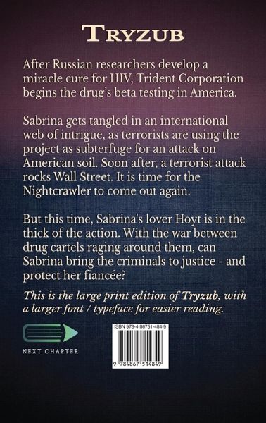 After Russian researchers develop a miracle cure for HIV, Trident Corporation begins the drug's beta testing in America. Sabrina gets tangled in an international web of intrigue, as terrorists are using the project as subterfuge for an attack on American soil. Soon after, a terrorist attack rocks Wall Street. It is time for the Nightcrawler to come out again. But this time, Sabrina's lover Hoyt is in the thick of the action. With the war between drug cartels raging around them, can Sabrina bring the criminals to justice - and protect her fiancée? This is the large print edition of Tryzub, with a larger font / typeface for easier reading.¿