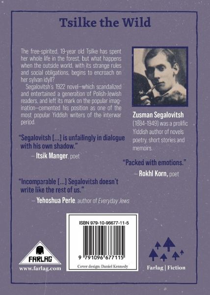 The free-spirited, 19-year old Tsilke has spent her whole life in the forest, but what happens when the outside world, with its strange rules and social obligations, begins to encroach on her sylvan idyll? Segalovitsh's 1922 novel-which scandalized and entertained a generation of Polish-Jewish readers, and left its mark on the popular imagination-cemented his position as one of the most popular Yiddish writers of the interwar period. "Segalovitsh [...] is unfailingly in dialogue with his own shadow." - Itsik Manger "Packed with emotions." - Rokhl Korn "Incomparable [...] Segalovitsh doesn't write like the rest of us." - Yehoshua Perle