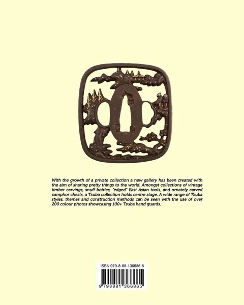 Rolling Brooks Gallery hosts an eclectic range of hand-carved timber artworks, snuff bottles, antique/vintage carved camphor chests, and many East Asian edged weapons. The Tsuba, hand guard to the Samurai warrior's Katana, has captivated the Gallery's heart and holds centre stage. This book is a result of the gallery's current digitisation efforts and is the first official point of access for the gallery, along with its Insta social media page. A wide range of Tsuba styles, themes, and construction methods are seen with the aid of over 200 colour photos showcasing 100+ Tsuba hand guards. Photos depicting the actual size of the Tsuba have also been included. A comprehensive glossary summarises the historical terminology that is used within the book, and a bibliography lists the modern/current references used in providing the book's information. This is the largest collection of Tsuba in Western Australia.