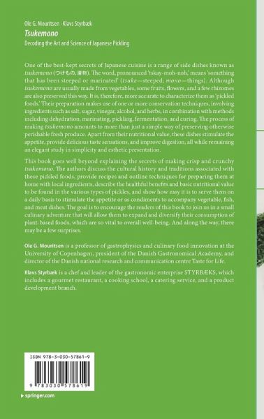 Tsukemono-a Japanese culinary art based on the science of preservation.- Vegetables and tsukemono-made for each other.- The many varieties of tsukemono.- Salt, taste, mouthfeel, and colour.- Techniques and methods.- Tsukemono for everyone.- Tsukemono in Japan.- Tsukemono, nutrition, and wellness.- Wabi, tsukemono, and esthetics.- Index