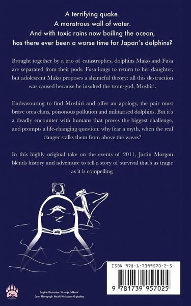 Rattled by a quake. Hammered by a wave. Dolphins love to play, but in the radioactive waters off Japan, is survival one game they're destined to lose? An epic natural disaster sees strangers Mako and Fusa swept onto the shores of Fukushima. Adrift from their pods, and with the nearby power plant spewing toxic poison, they strive to understand why the god of the oceans is so angry. Could it be because Mako so rudely insulted him? And if so, do they stand any chance of evading his next strike? Longing for calmer seas, and desperate to be reunited with their pods, the pair journey to find the mighty God and offer an apology. But on an adventure beset by orca clans, radioactive pollution and militarised dolphins, it's an encounter with humans that will change everything. After all, why should they fear a myth, when real danger hunts them from above the waves? ¿This inspirational coming of age story, like Watership Down and many other beloved YA animal stories, is a work of realistic animal fiction that takes teen and adult readers on an emotional journey. As the animal characters struggle to make sense of an ocean thrown into chaos, they are forced on a journey of self-discovery that reveals the true meaning of friendship. But, even if they're willing to risk everything to save each other, will they be able to find a happy ending in a world that is falling apart? With this book's adventure rooted in the true story of the 2011 earthquake, tsunami and nuclear disaster in Fukushima, Japan, Morgan utilises a tragic episode in Japanese history to deliver a compelling environmental narrative as we witness the impact of ecological devastation and the power of resilience and friendship through the eyes of dolphins. A touching work of animal realism and literary fiction, this book is also a must-read for anyone with an interest in contemporary history, eco-fiction, marine ecology and the creation myths of the indigenous Ainu people.