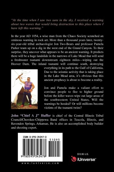 "At the time when I saw two suns in the sky, I received a warning about two waves that would bring destruction to this place where I have left this warning." In the year AD 1054, a wise man from the Chaco Society scratched an ominous warning in rock art. More than a thousand years later, twenty-six-year-old tribal archaeologist Jon Two-Bears and professor Pamela Parker team up on a dig in the west end of the Grand Canyon. To their surprise, they uncover what appears to be an ancient warning. It predicts there will be a huge landslide in the narrows of Lake Mead that will send a freshwater tsunami downstream eighteen miles--wiping out the Hoover Dam. The inland tsunami will continue south, destroying everything in its path to the Gulf of California. Due to the seismic activity that is taking place in the Lake Mead area, it's obvious that this ancient prophecy is about to become a reality. Jon and Pamela make a valiant effort to convince people to flee to higher ground before the killer waves wipe out large areas of the southwestern United States. Will the warnings be heeded? Or will millions become victims of the tsunami twins?