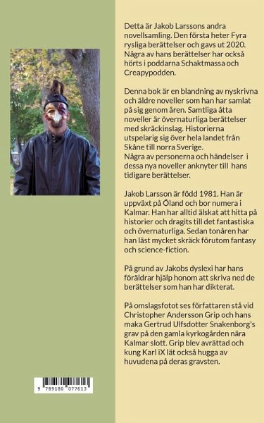 Detta är Jakob Larssons andra novellsamling. Den första heter Fyra rysliga berättelser och gavs ut 2020. Några av hans berättelser har också hörts i poddarna Schaktmassa och Creapypodden. Denna bok är en blandning av nyskrivna och äldre noveller som han har samlat på sig genom åren. Samtliga åtta noveller är övernaturliga berättelser med skräckinslag. Historierna utspels över hela landet från Skåne till norra Sverige.
