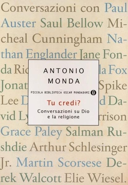 "Tu credi? È costruito tutto su una semplice ma fondamentale provocazione: ho chiesto ai miei interlocutori di dirmi in tutta onestà se ritengono che Dio esista, e qual è la loro conseguente scelta di vita". Così Antonio Monda presenta questo libro: una serie di conversazioni con i protagonisti della letteratura, del cinema e della cultura americane contemporanee, da Paul Auster a Saul Bellow, da Jane Fonda a David Lynch, Jonathan Franzen, Martin Scorsese e altri. Intellettuali e artisti di estrazione diversissima per sesso, religione, tradizioni culturali, abitudini, con posizioni variegate in tema di fede, da chi intrattiene un colloquio quotidiano con Dio a chi vive nella convinzione della sua raggelante assenza. Raccontati con sincerità, scelte e percorsi di ciascuno di loro permettono al lettore non solo di approfondire la propria personale riflessione spirituale, ma anche e soprattutto di capire meglio la realtà contraddittoria dell'America, il paese del consumismo e del puritanesimo.