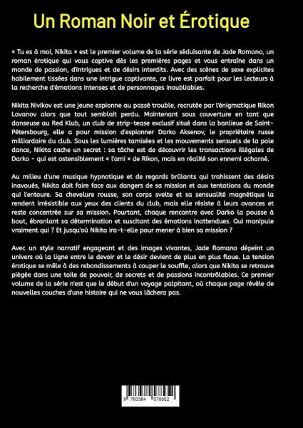 « Tu es à moi, Nikita » est le premier volume de la série séduisante de Jade Romano, un roman érotique qui vous captive dès les premières pages et vous entraîne dans un monde de passion, d'intrigues et de désirs interdits. Avec des scènes de sexe explicites habilement tissées dans une intrigue captivante, ce livre est parfait pour les lecteurs à la recherche d'émotions intenses et de personnages inoubliables. Nikita Nivikov est une jeune espionne au passé trouble, recrutée par l'énigmatique Rikon Lavanov alors que tout semblait perdu. Maintenant sous couverture en tant que danseuse au Red…mehr
