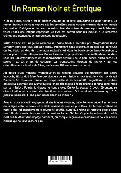 « Tu es à moi, Nikita » est le premier volume de la série séduisante de Jade Romano, un roman érotique qui vous captive dès les premières pages et vous entraîne dans un monde de passion, d'intrigues et de désirs interdits. Avec des scènes de sexe explicites habilement tissées dans une intrigue captivante, ce livre est parfait pour les lecteurs à la recherche d'émotions intenses et de personnages inoubliables. Nikita Nivikov est une jeune espionne au passé trouble, recrutée par l'énigmatique Rikon Lavanov alors que tout semblait perdu. Maintenant sous couverture en tant que danseuse au Red Klub, un club de strip-tease exclusif situé dans la banlieue de Saint-Pétersbourg, elle a pour mission d'espionner Darko Aksenov, le propriétaire russe milliardaire du club. Sous les lumières tamisées et les mouvements sensuels de la pole dance, Nikita cache un secret : sa tâche est de découvrir les transactions illégales de Darko - qui est ostensiblement « l'ami » de Rikon, mais en réalité son ennemi acharné. Au milieu d'une musique hypnotique et de regards brûlants qui trahissent des désirs inavoués, Nikita doit faire face aux dangers de sa mission et aux tentations du monde qui l'entoure. Sa chevelure rousse, son corps svelte et sa sensualité magnétique la rendent irrésistible aux yeux des clients du club, mais elle résiste à leurs avances et reste concentrée sur sa mission. Pourtant, chaque rencontre avec Darko la pousse à bout, ébranlant sa détermination et suscitant des émotions inattendues. Qui manipule vraiment qui ? Et jusqu'où Nikita ira-t-elle pour mener à bien sa mission ? Avec un style narratif engageant et des images vivantes, Jade Romano dépeint un univers où la ligne entre le devoir et le désir devient de plus en plus floue. La tension érotique se mêle à des rebondissements à couper le souffle, alors que Nikita se retrouve piégée dans une toile de pouvoir, de secrets et de passions incontrôlables. Ce premier volume de la série n'est que le début d'un voyage palpitant, où chaque page révèle de nouvelles couches d'une histoire qui ne vous lâchera pas. Si vous êtes prêt à plonger dans un monde où le danger se cache à chaque coin de rue et où le plaisir est toujours à portée de main, « You're Mine, Nikita ! » est le roman qu'il vous faut. Un mélange parfait d'érotisme et de suspense, idéal pour les amateurs d'histoires audacieuses et de personnages qui repoussent toutes les limites. Découvrez le premier chapitre de cette série à couper le souffle et laissez-vous emporter par un tourbillon d'émotions inoubliables.