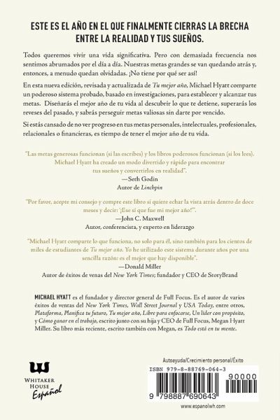 Michael Hyatt, autor superventas, comparte un poderoso sistemapara establecer y alcanzar tus metas. Este es el año en el quefinalmente cierras la brecha entre la realidad y tus sueñosTodos queremos vivir una vida que importe, pero con demasiada frecuencia nos sentimos abrumados por el día a día. Nuestros grandes objetivos quedan relegados a un segundo plano, y luego, la mayoría de las veces, se olvidan. No es as? No tiene que ser as?! Este es el año en que finalmente cierras la brecha entre la realidad y tus sueños.