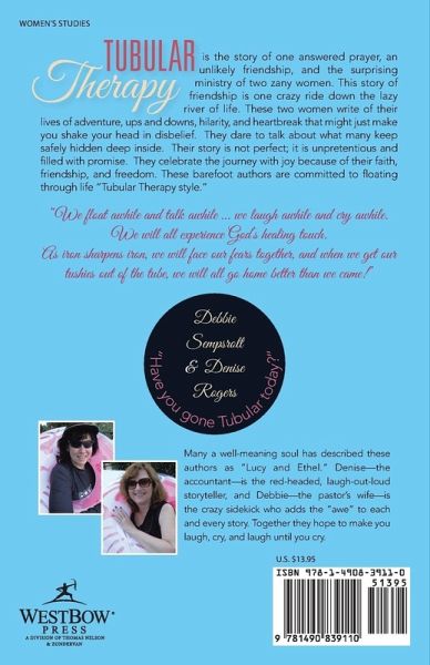 Tubular Therapy is the story of one answered prayer, an unlikely friendship, and the surprising ministry of two zany women. This story of friendship is one crazy ride down the lazy river of life. These two women write of their lives of adventure, ups and downs, hilarity, and heartbreak that might just make you shake your head in disbelief. They dare to talk about what many keep safely hidden deep inside. Their story is not perfect; it is unpretentious and filled with promise. They celebrate the journey with joy because of their faith, friendship, and freedom. These barefoot authors are committed to floating through life "Tubular Therapy style." "We float awhile and talk awhile … we laugh awhile and cry awhile. We will all experience God’s healing touch. As iron sharpens iron, we will face our fears together, and when we get our tushies out of the tube, we will all go home better than we came!"