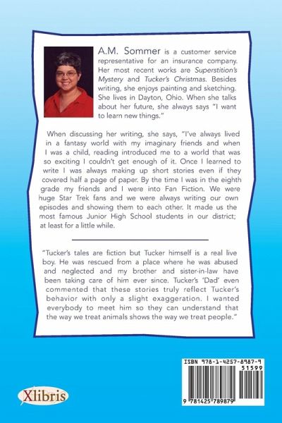 "Tucker's tales are fiction but Tucker himself is a real live boy. He was rescued from a place where he was abused and neglected and my brother and sister-in-law have been taking care of him ever since. Tucker's 'Dad' even commented that these stories truly reflect Tucker's behavior with only a slight exaggeration. I wanted everybody to meet him so they can understand that the way we treat animals shows the way we treat people."