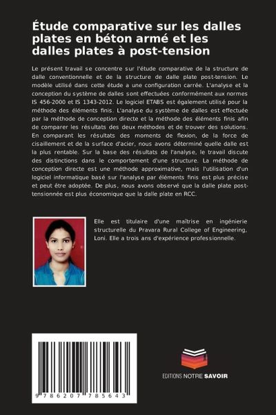 Le présent travail se concentre sur l'étude comparative de la structure de dalle conventionnelle et de la structure de dalle plate post-tension. Le modèle utilisé dans cette étude a une configuration carrée. L'analyse et la conception du système de dalles sont effectuées conformément aux normes IS 456-2000 et IS 1343-2012. Le logiciel ETABS est également utilisé pour la méthode des éléments finis. L'analyse du système de dalles est effectuée par la méthode de conception directe et la méthode des éléments finis afin de comparer les résultats des deux méthodes et de trouver des solutions. En comparant les résultats des moments de flexion, de la force de cisaillement et de la surface d'acier, nous avons déterminé quelle dalle est la plus rentable. Sur la base des résultats de l'analyse, le travail discute des distinctions dans le comportement d'une structure. La méthode de conception directe est une méthode approximative, mais l'utilisation d'un logiciel informatique basé sur l'analyse par éléments finis est plus précise et peut être adoptée. De plus, nous avons observé que la dalle plate post-tensionnée est plus économique que la dalle plate en RCC.