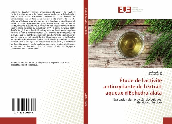 L'objet est d'évaluer l'activité antioxydante (In vitro et In vivo), et l'activité antibactérienne de l'extrait aqueux de la plante Ephedra alata alenda; une plante saharienne, appartenant à la famille des Ephedraceaes; ont été testées. Le macérat a été préparé de la partie aérienne d'Ephedra alata alenda. In vitro, l'analyse phytochimique de l'extrait a révélé la présence des polyphénoles, flavonoïdes, alcaloïdes, tanins, terpènes et saponines. L'évaluation de l'effet antioxydant de ces extraits par le piégeage du radical libre DPPH a donné la valeur d'IC50 de 0.049 mg/ml. Ainsi l'activité antioxydante par la voltamétrie cyclique vis-à-vis le radical superoxyde anion O2-- a donné des bonnes résultats. In Vivo, l'analyse montre une variation significative du poids relatif du foie de groupe exposé au métribuzine. Des changements notables dans les paramètres biochimiques étudiés, aussi pour les paramètres de stress oxydatif chez le lot exposé au métribuzine. En revanche, le traitement par l'extrait aqueux et par le cisplatine donne des résultats similaires en normalisant et diminuant l'état de stress. L'étude histologique a confirmé les résultats obtenues.